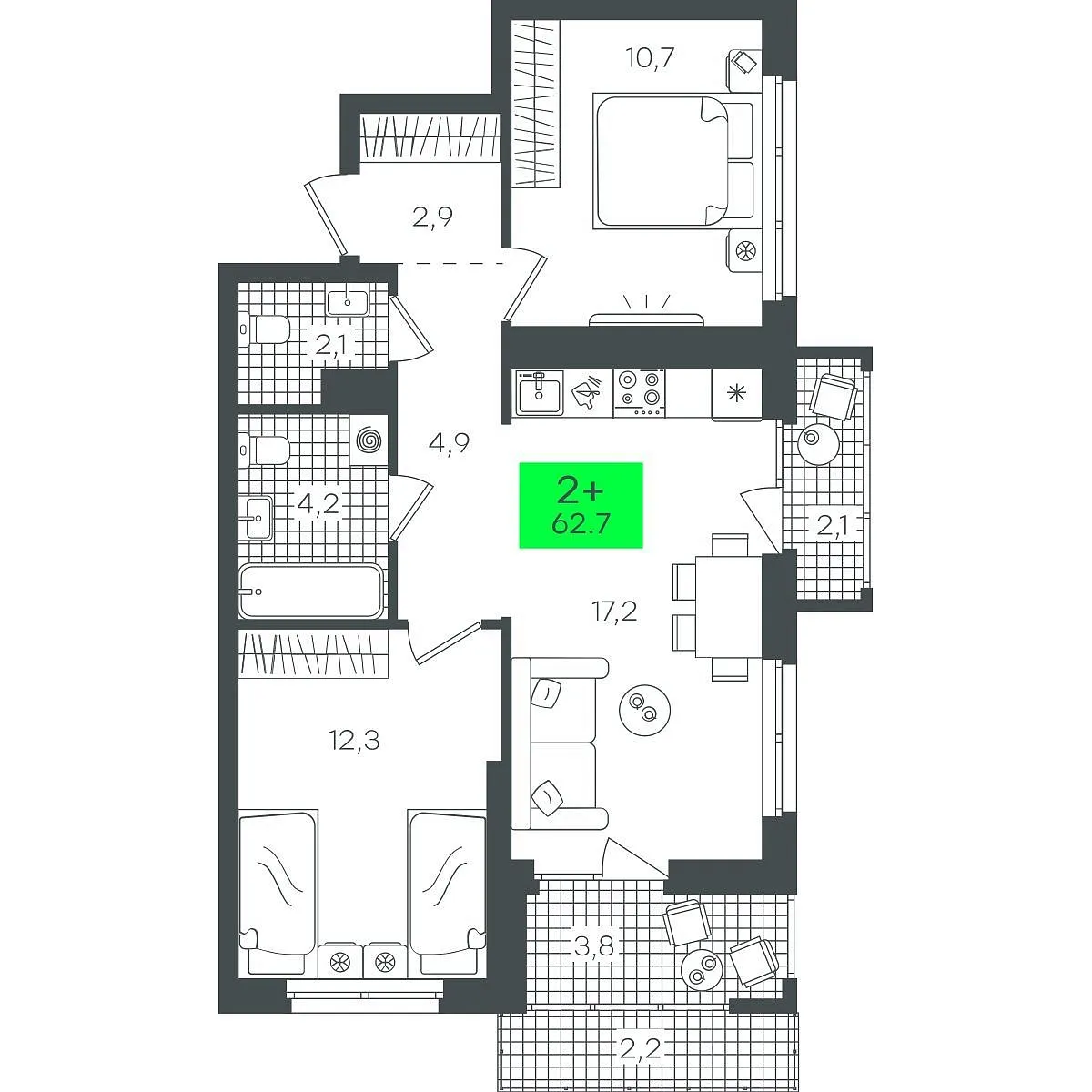 Купить новую двухкомнатную квартиру 62.79 м² на 6/22 этаже в ЖК «Гранд Квартал», г. Тюмень за 9115000 ₽ | Агентство недвижимости «Вплюсе.Топ» — Недвижимость России