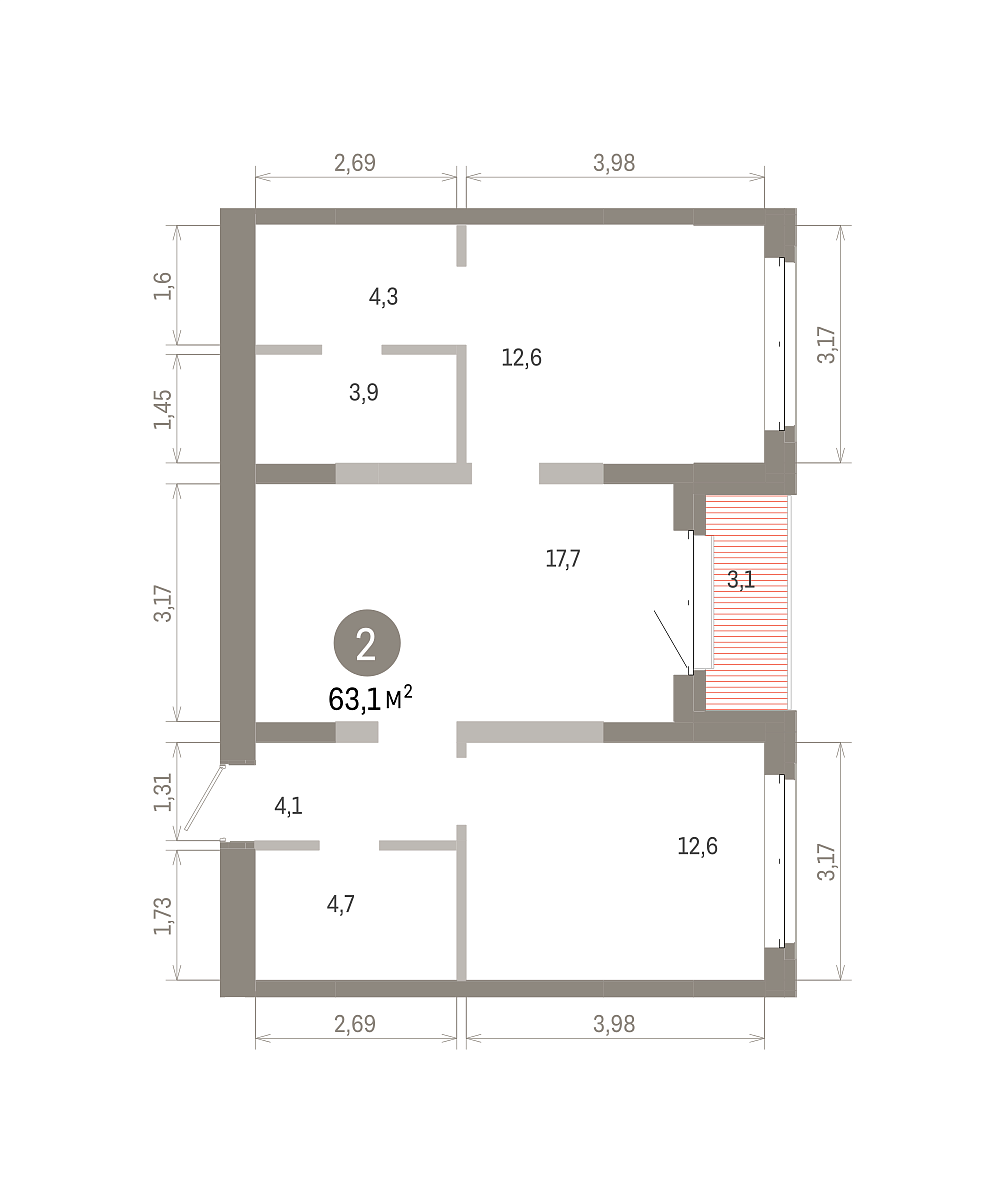 Количество комнат: 2, 63.05 кв.м.