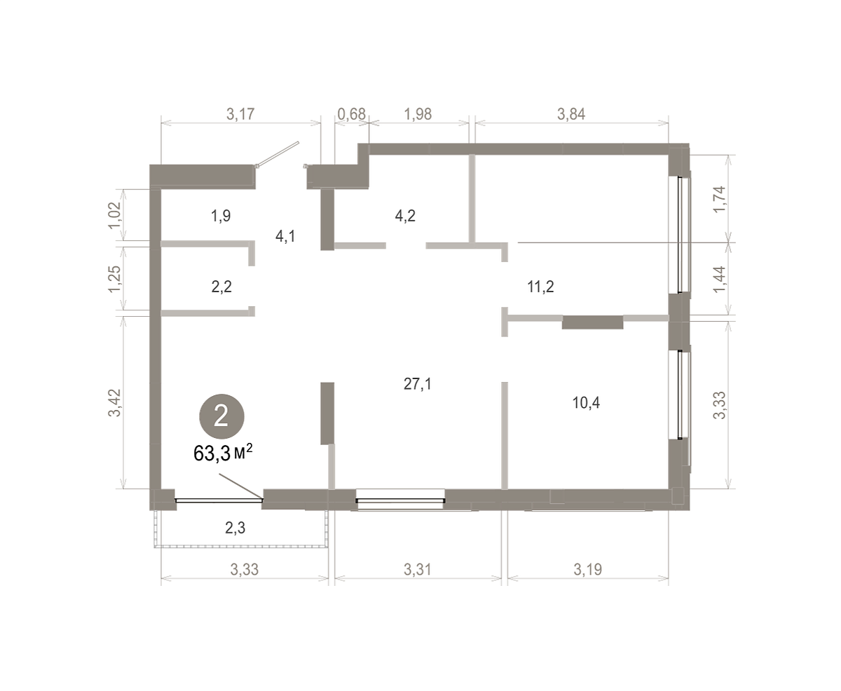 Общая площадь 63.33 м2
