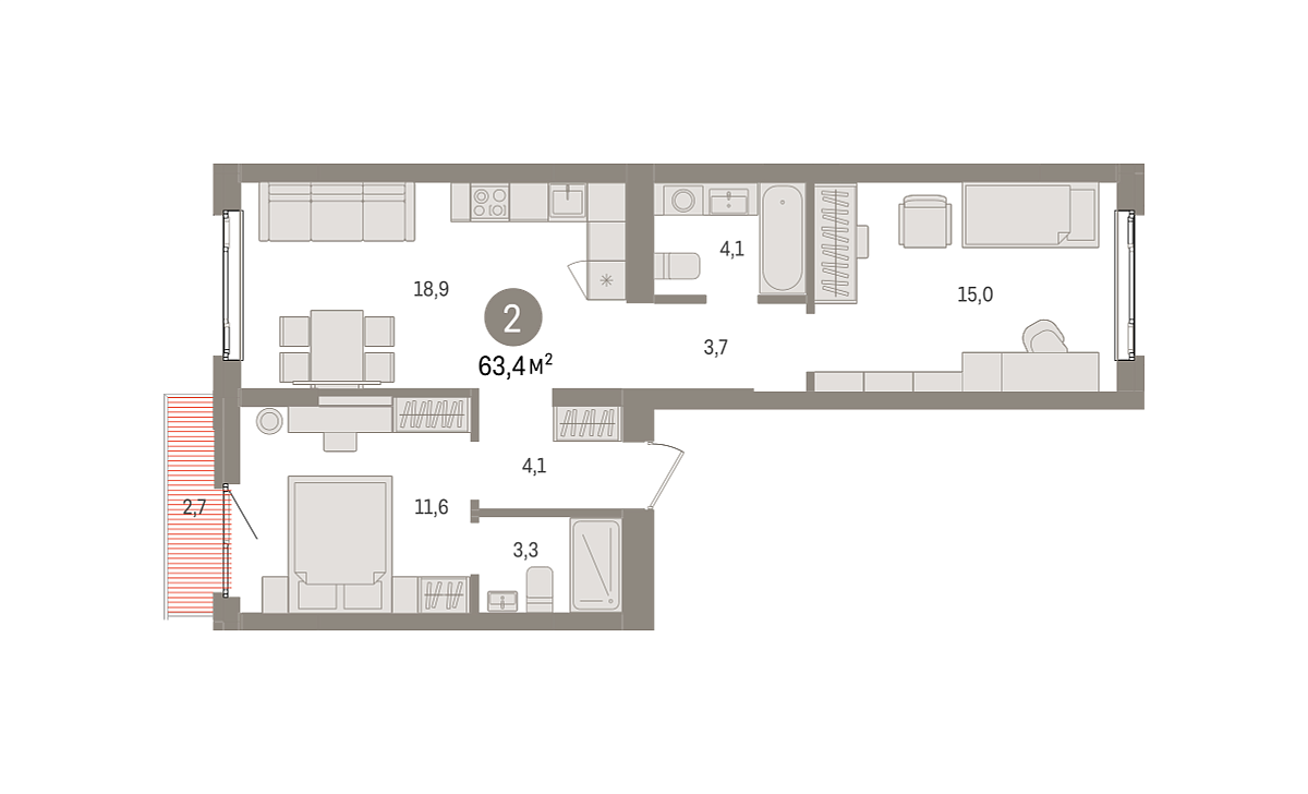 Купить новую двухкомнатную квартиру 63.4 м² на 5/7 этаже в ЖК «Квартал «Траектория»», г. Тюмень за 9370000 ₽ | Агентство недвижимости «Вплюсе.Топ» — Недвижимость России