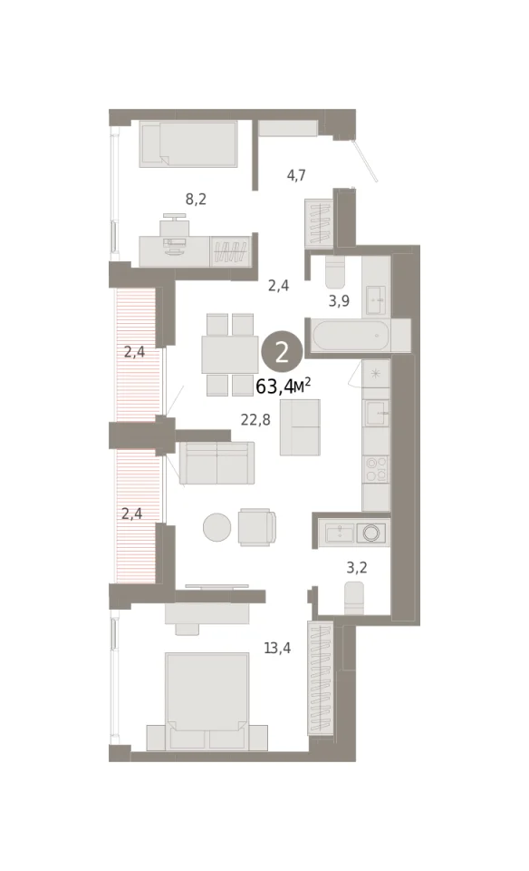 Купить новую двухкомнатную квартиру 63.42 м² на 22/25 этаже в ЖК «Зарека», г. Тюмень за 9640000 ₽ | Агентство недвижимости «Вплюсе.Топ» — Недвижимость России