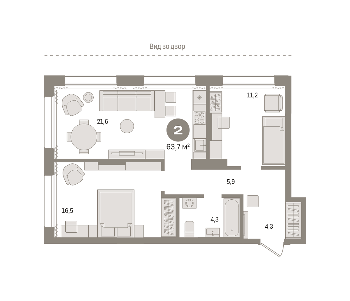 Купить новую двухкомнатную квартиру 63.68 м² на 4/17 этаже в ЖК «Октябрьский на Туре», г. Тюмень за 8370000 ₽ | Агентство недвижимости «Вплюсе.Топ» — Недвижимость России