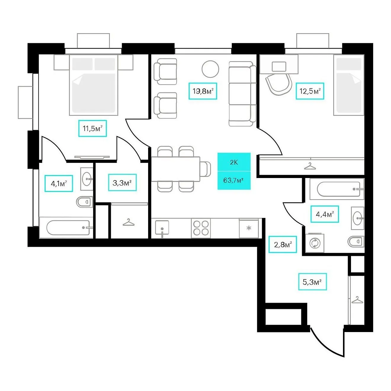 Общая площадь 63.7 м2