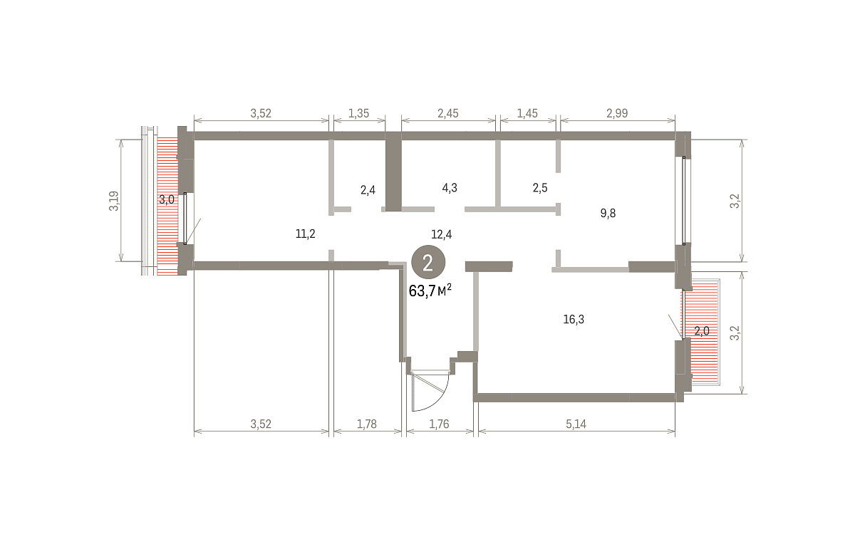 Количество комнат: 2, 63.73 кв.м.
