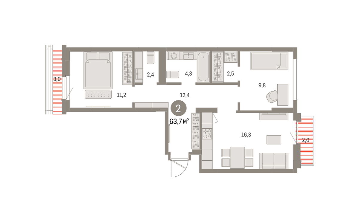 Купить новую двухкомнатную квартиру 63.73 м² на 8/9 этаже в ЖК «Брусника в Академическом», г. Тюмень за 10480000 ₽ | Агентство недвижимости «Вплюсе.Топ» — Недвижимость России