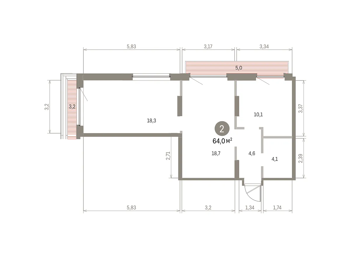 Площадь (общ/жил/кух), м2: 55.9/18.52/15.68