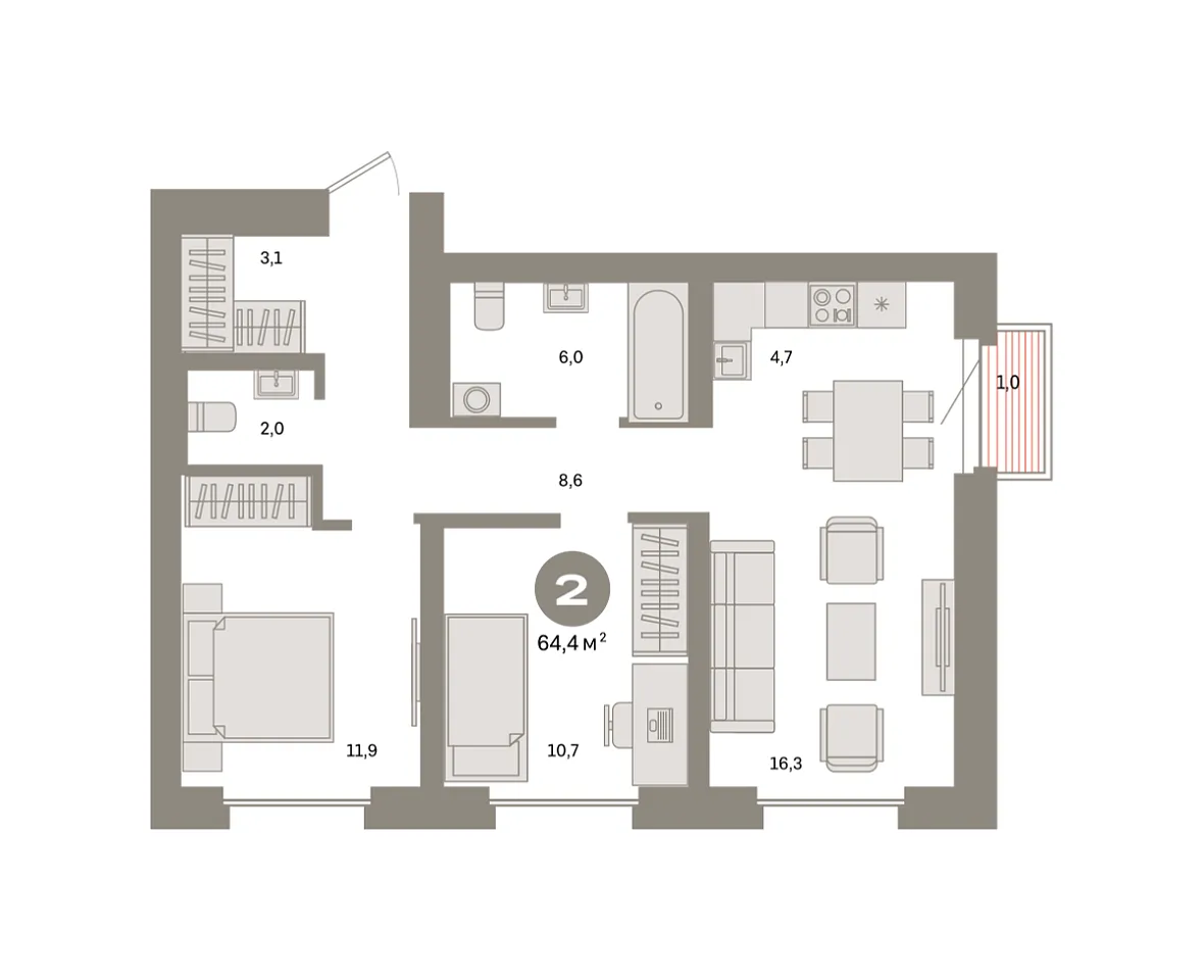 Купить новую двухкомнатную квартиру 64.3 м² на 9/24 этаже в ЖК «Квартал «Метроном»», г. Тюмень за 25370000 ₽ | Агентство недвижимости «Вплюсе.Топ» — Недвижимость России