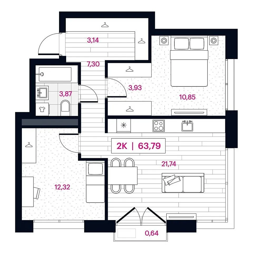 Количество комнат: 2, 64.41 кв.м.