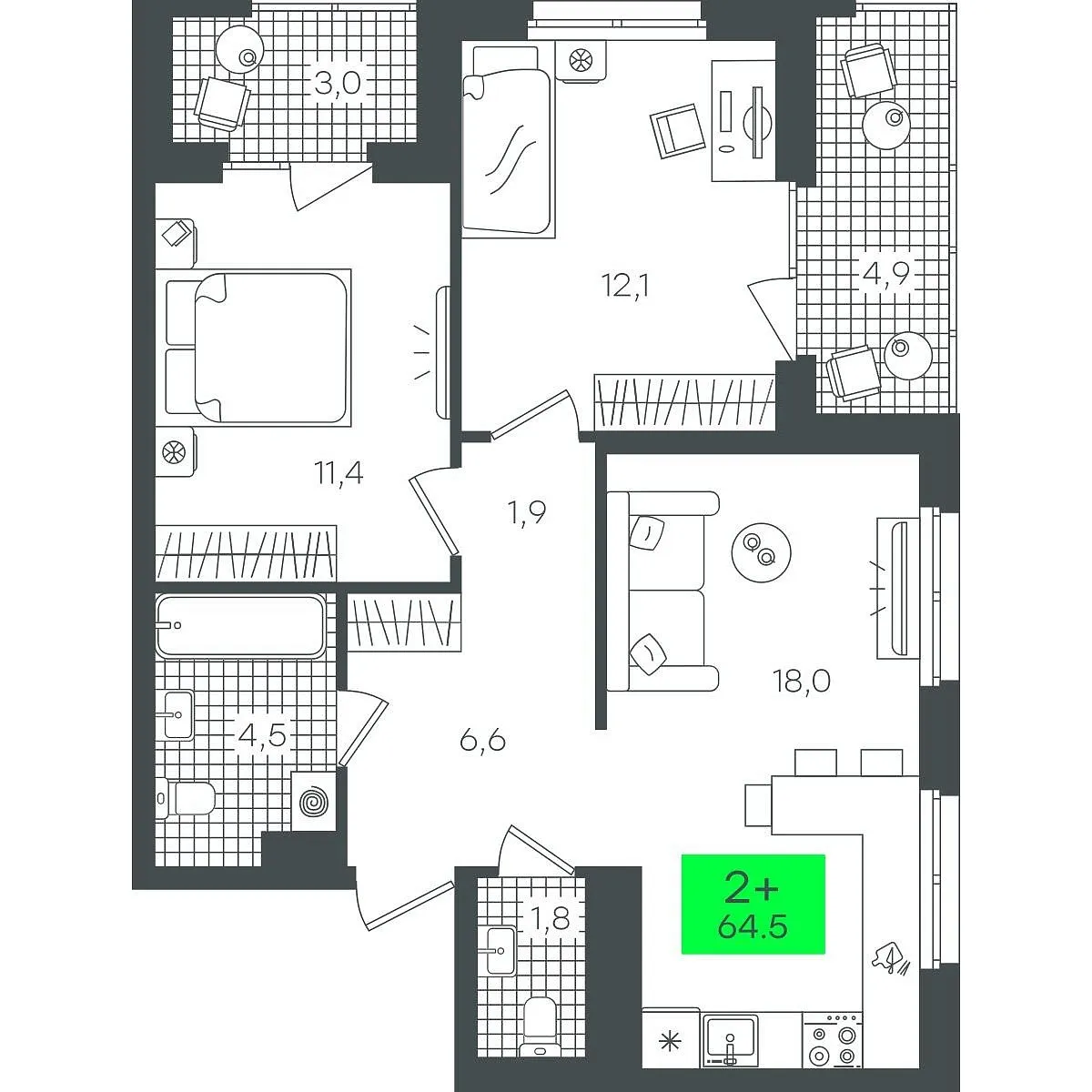 Купить новую двухкомнатную квартиру 64.57 м² на 14/22 этаже в ЖК «Гранд Квартал», г. Тюмень за 9295000 ₽ | Агентство недвижимости «Вплюсе.Топ» — Недвижимость России
