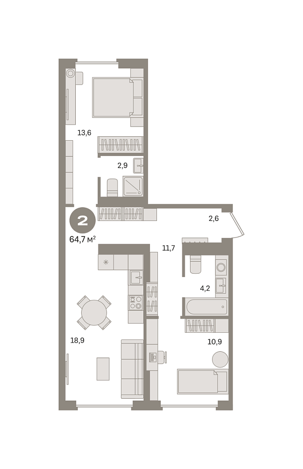 Купить новую двухкомнатную квартиру 64.7 м² на 6/8 этаже в ЖК «Первый квартал», г. Тюмень за 13680000 ₽ | Агентство недвижимости «Вплюсе.Топ» — Недвижимость России