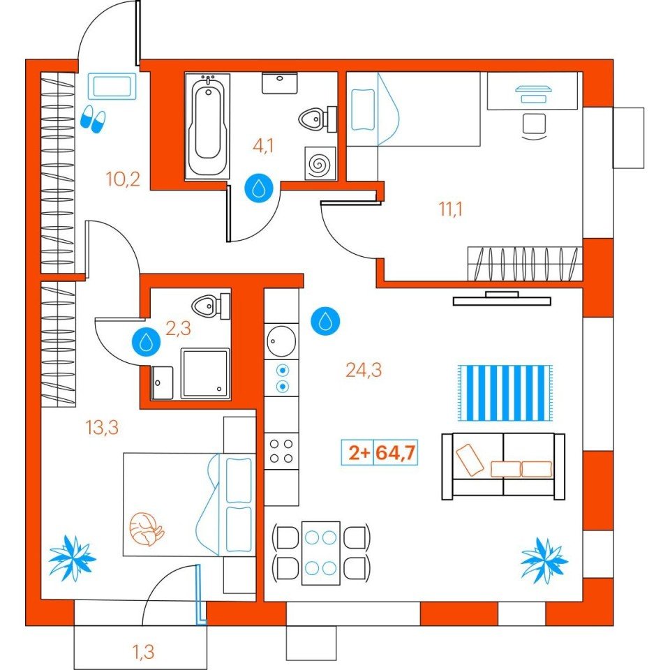 Купить новую двухкомнатную квартиру 64.7 м² на 7/22 этаже в ЖК «SuperSky», г. Тюмень за 9150000 ₽ | Агентство недвижимости «Вплюсе.Топ» — Агентство недвижимости "Вплюсе.Топ"