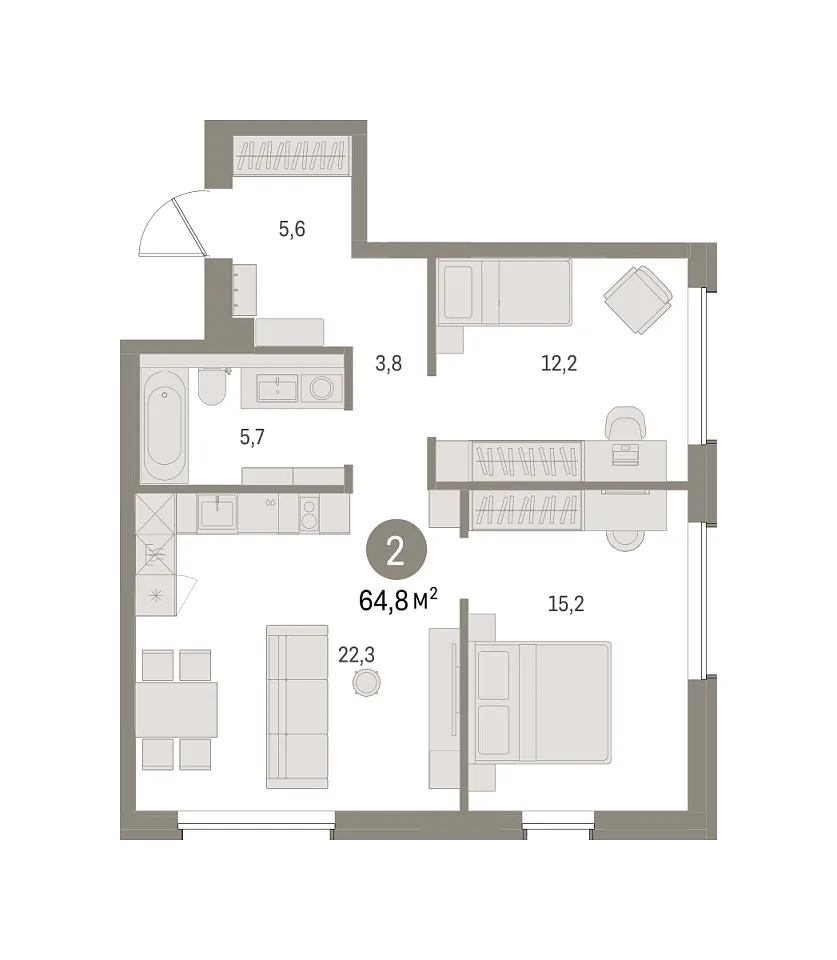 Купить новую двухкомнатную квартиру 64.73 м² на 5/10 этаже в ЖК «Северный ветер», г. Тюмень за 23930000 ₽ | Агентство недвижимости «Вплюсе.Топ» — Недвижимость России