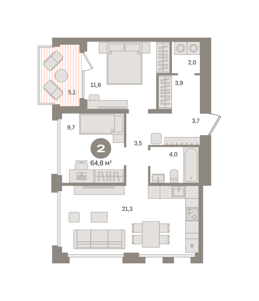 Купить новую двухкомнатную квартиру 64.8 м² на 5/8 этаже в ЖК «Дом «А»», г. Тюмень за 47630000 ₽ | Агентство недвижимости «Вплюсе.Топ» — Агентство недвижимости "Вплюсе.Топ"