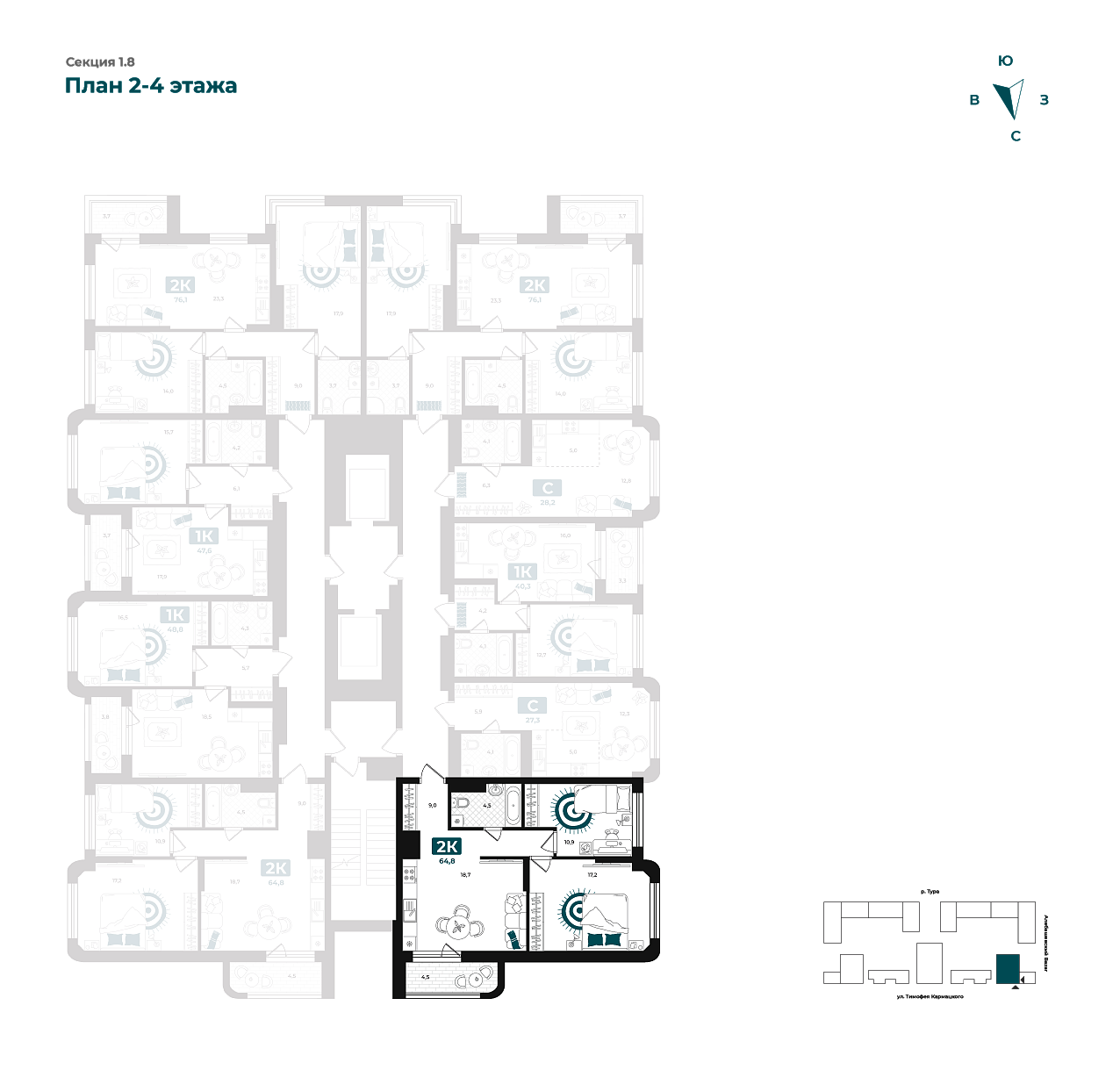 Общая площадь 64.8 м2