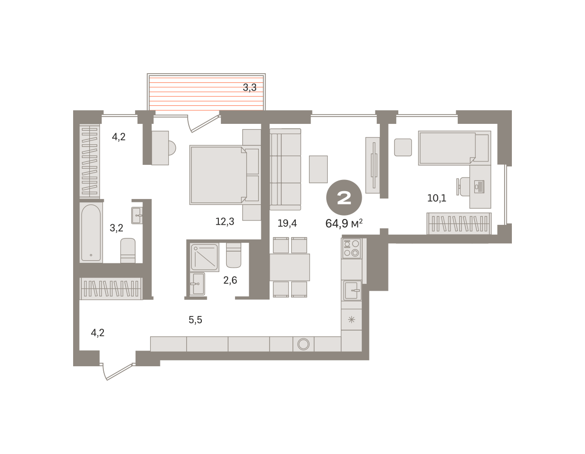 Купить новую двухкомнатную квартиру 64.85 м² на 5/8 этаже в ЖК «Северный квартал», г. Тюмень за 8430000 ₽ | Агентство недвижимости «Вплюсе.Топ» — Агентство недвижимости "Вплюсе.Топ"