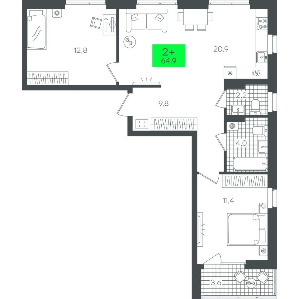 Купить новую двухкомнатную квартиру 64.97 м² на 6/22 этаже в ЖК «Гранд Квартал», г. Тюмень за 9050000 ₽ | Агентство недвижимости «Вплюсе.Топ» — Агентство недвижимости "Вплюсе.Топ"