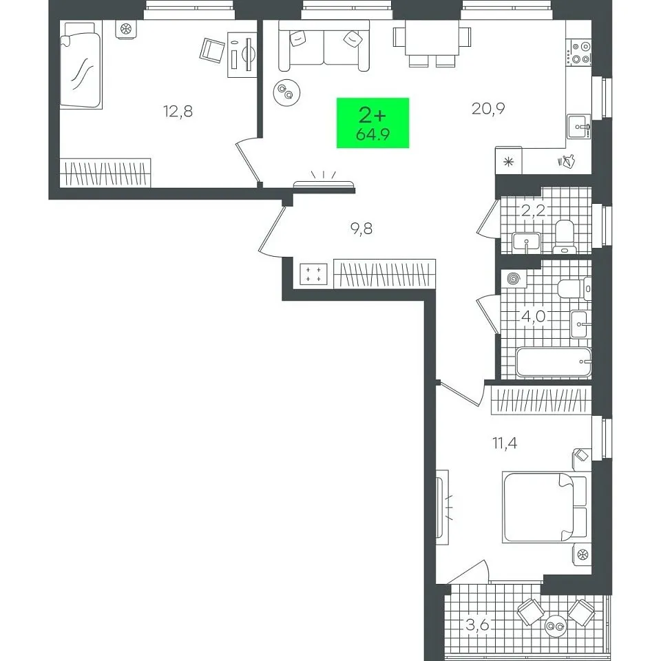 Купить новую двухкомнатную квартиру 64.97 м² на 6/22 этаже в ЖК «Гранд Квартал», г. Тюмень за 9295000 ₽ | Агентство недвижимости «Вплюсе.Топ» — Недвижимость России