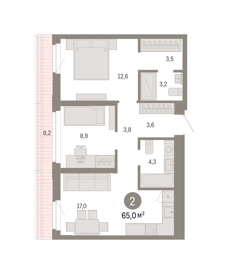 Купить новую двухкомнатную квартиру 65.02 м² на 11/18 этаже в ЖК «Республики 205», г. Тюмень за 10740000 ₽ | Агентство недвижимости «Вплюсе.Топ» — Недвижимость России