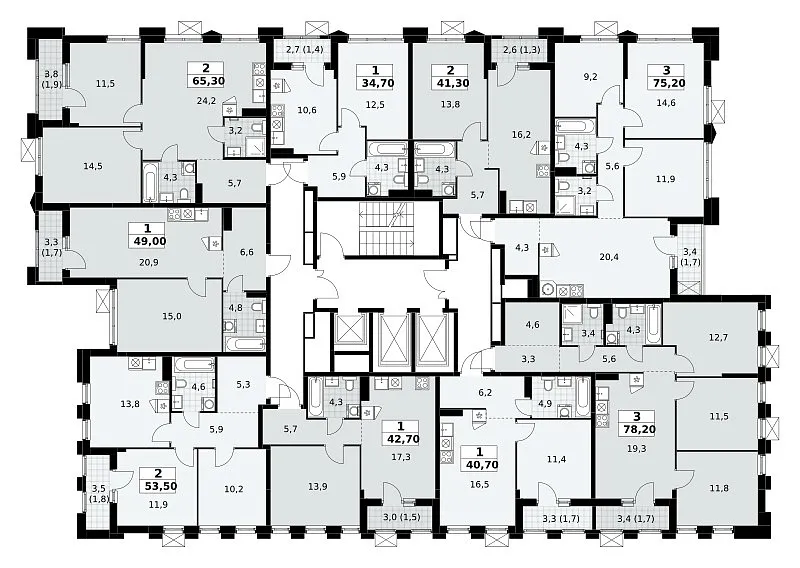 Площадь (общ/жил/кух), м2: 75.3/—/20.4