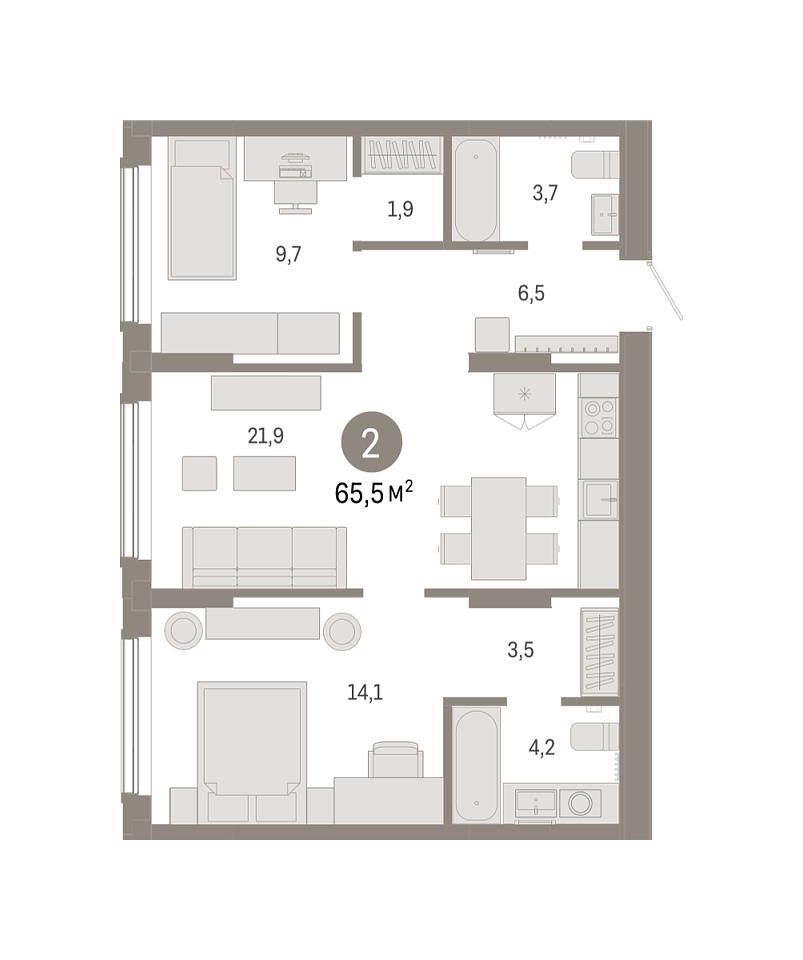 Купить новую двухкомнатную квартиру 65.45 м² на 2/17 этаже в ЖК «Октябрьский на Туре», г. Тюмень за 7670000 ₽ | Агентство недвижимости «Вплюсе.Топ» — Недвижимость России