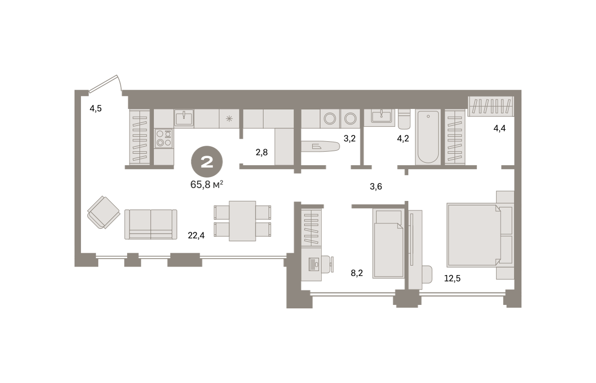 Площадь (общ/жил/кух), м2: 65.8/20.7/22.4
