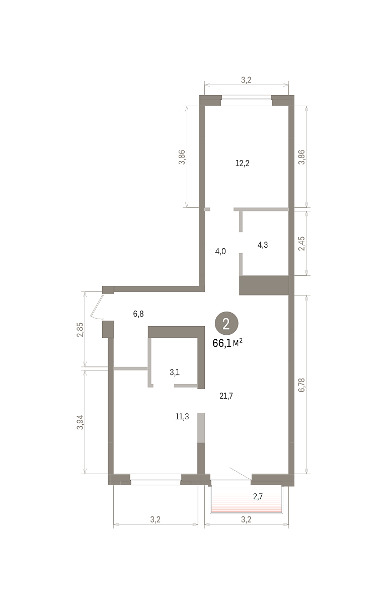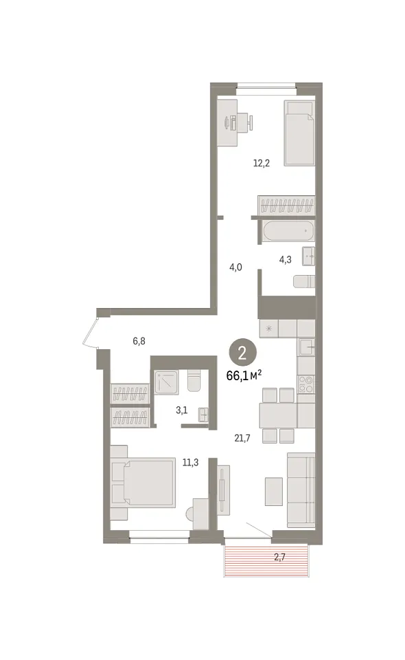 Количество комнат: 2, 66.1 кв.м.