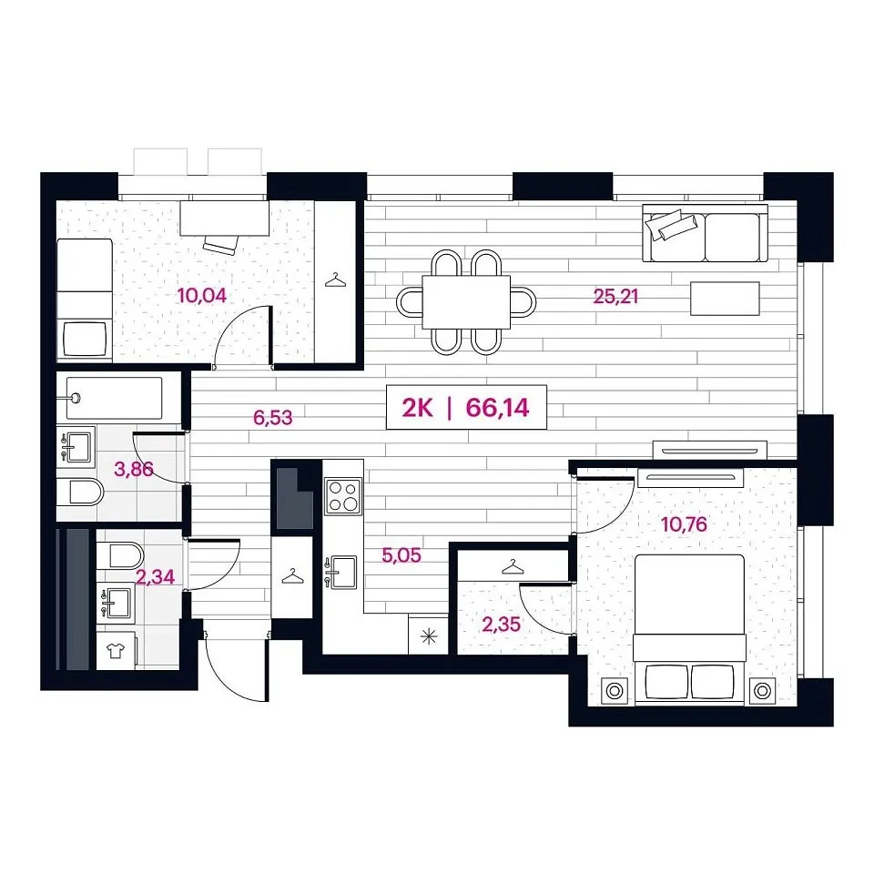 Количество комнат: 2, 66.22 кв.м.