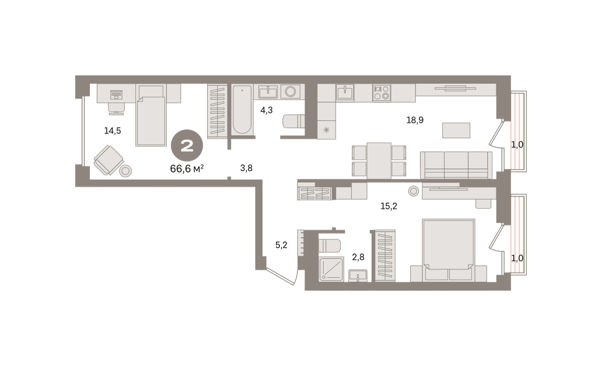 Купить новую двухкомнатную квартиру 66.6 м² на 2/9 этаже в ЖК «Первый квартал», г. Тюмень за 11790000 ₽ | Агентство недвижимости «Вплюсе.Топ» — Агентство недвижимости "Вплюсе.Топ"