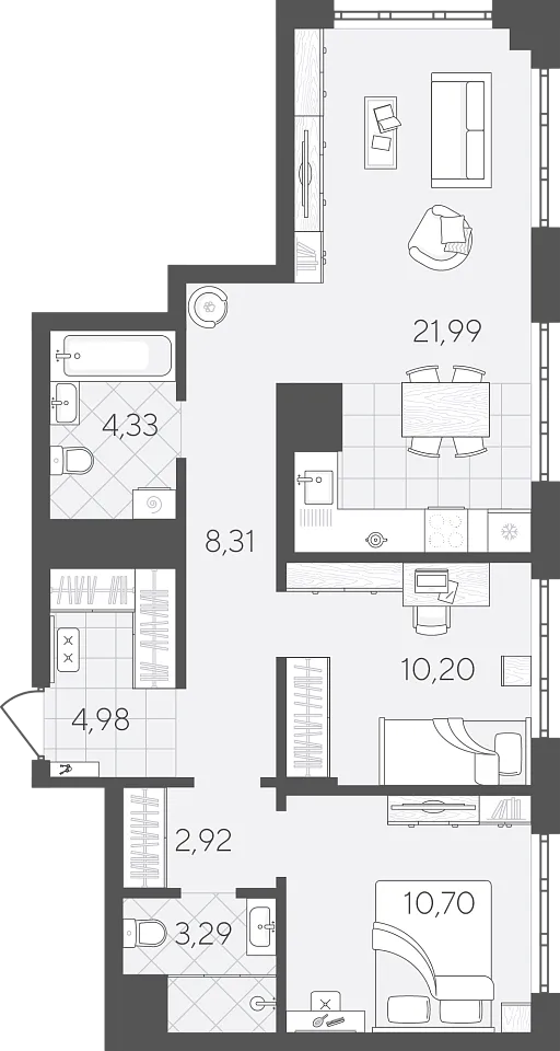 Купить новую двухкомнатную квартиру 66.72 м² на 10/24 этаже в ЖК «Скандиа. Квартал в Слободе», г. Тюмень за 9300000 ₽ | Агентство недвижимости «Вплюсе.Топ» — Недвижимость России