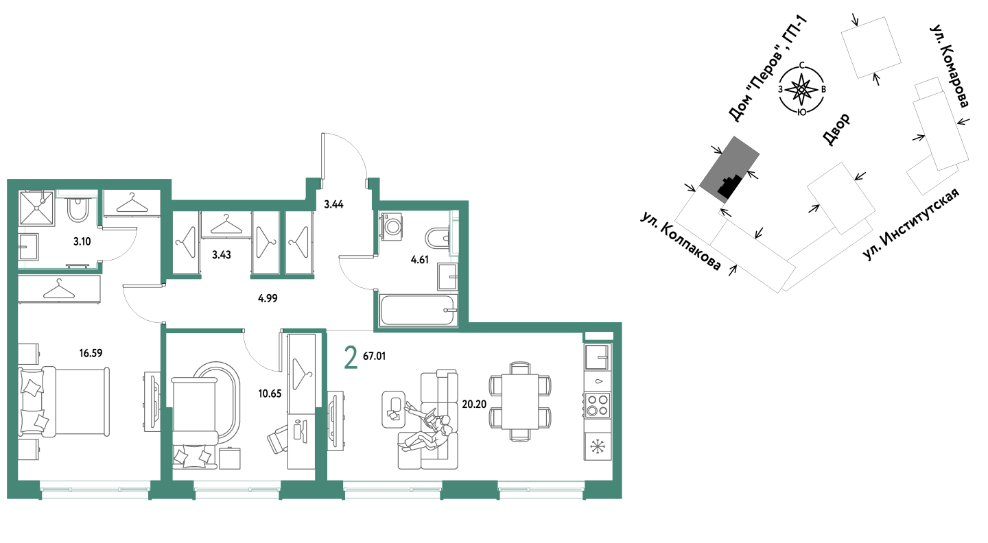 Купить новую двухкомнатную квартиру 67.01 м² на 19/25 этаже в ЖК «Страна.Парковая», г. Тюмень за 23160000 ₽ | Агентство недвижимости «Вплюсе.Топ» — Агентство недвижимости "Вплюсе.Топ"