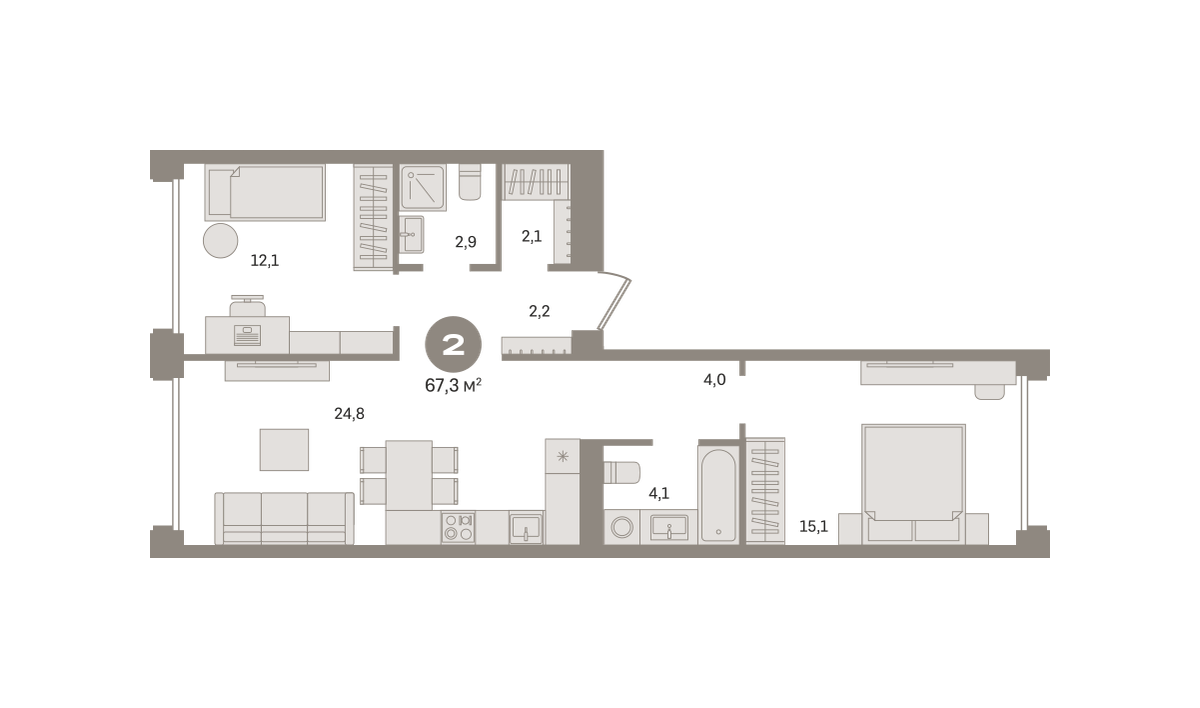 Купить новую двухкомнатную квартиру 67.3 м² на 2/6 этаже в ЖК «Дом «А»», г. Тюмень за 46710000 ₽ | Агентство недвижимости «Вплюсе.Топ» — Агентство недвижимости "Вплюсе.Топ"