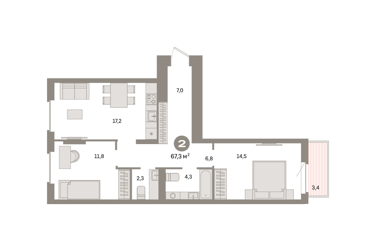 Купить новую двухкомнатную квартиру 67.3 м² на 4/9 этаже в ЖК «Квартал «Депо»», г. Тюмень за 7510000 ₽ | Агентство недвижимости «Вплюсе.Топ» — Агентство недвижимости "Вплюсе.Топ"