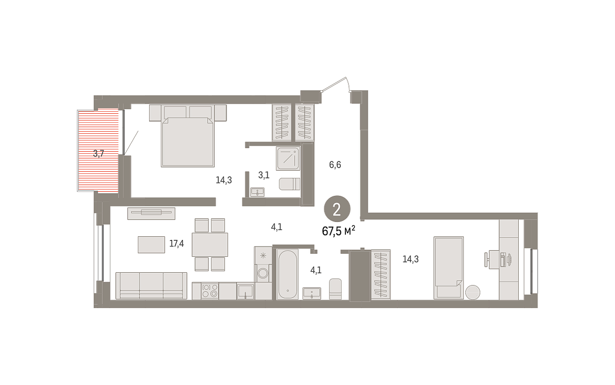 Площадь (общ/жил/кух), м2: 67.5/28.5/17.4