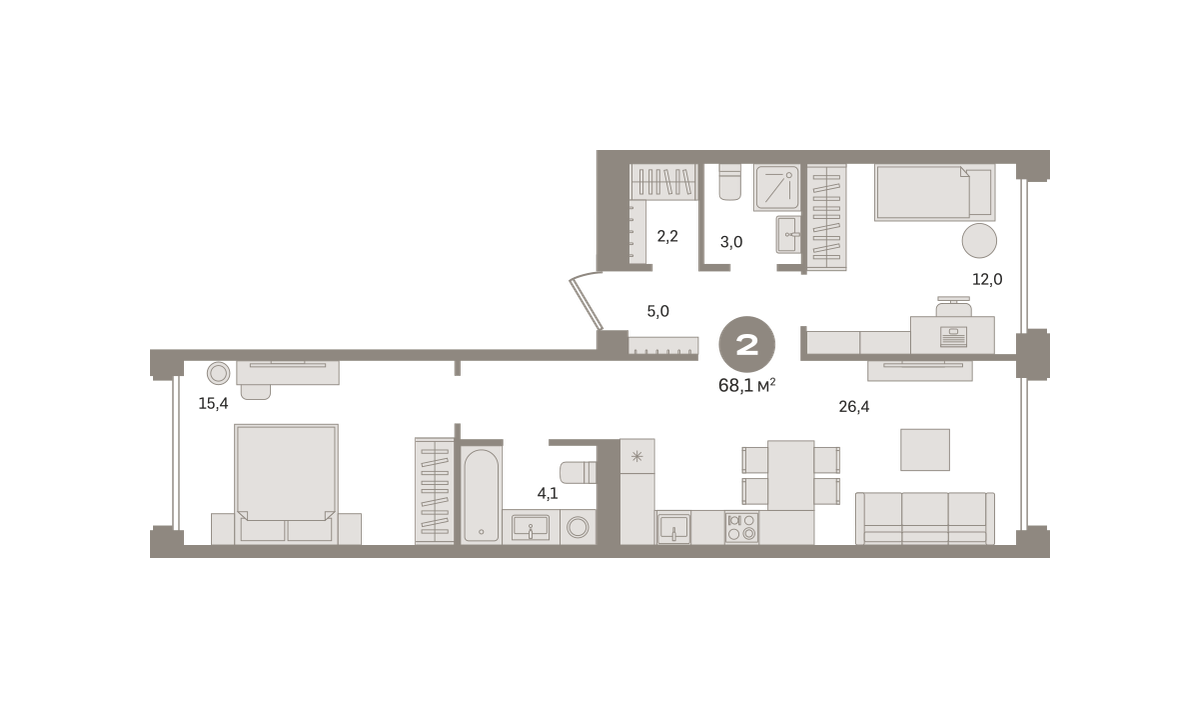 Купить новую двухкомнатную квартиру 68.1 м² на 2/6 этаже в ЖК «Дом «А»», г. Тюмень за 49880000 ₽ | Агентство недвижимости «Вплюсе.Топ» — Агентство недвижимости "Вплюсе.Топ"