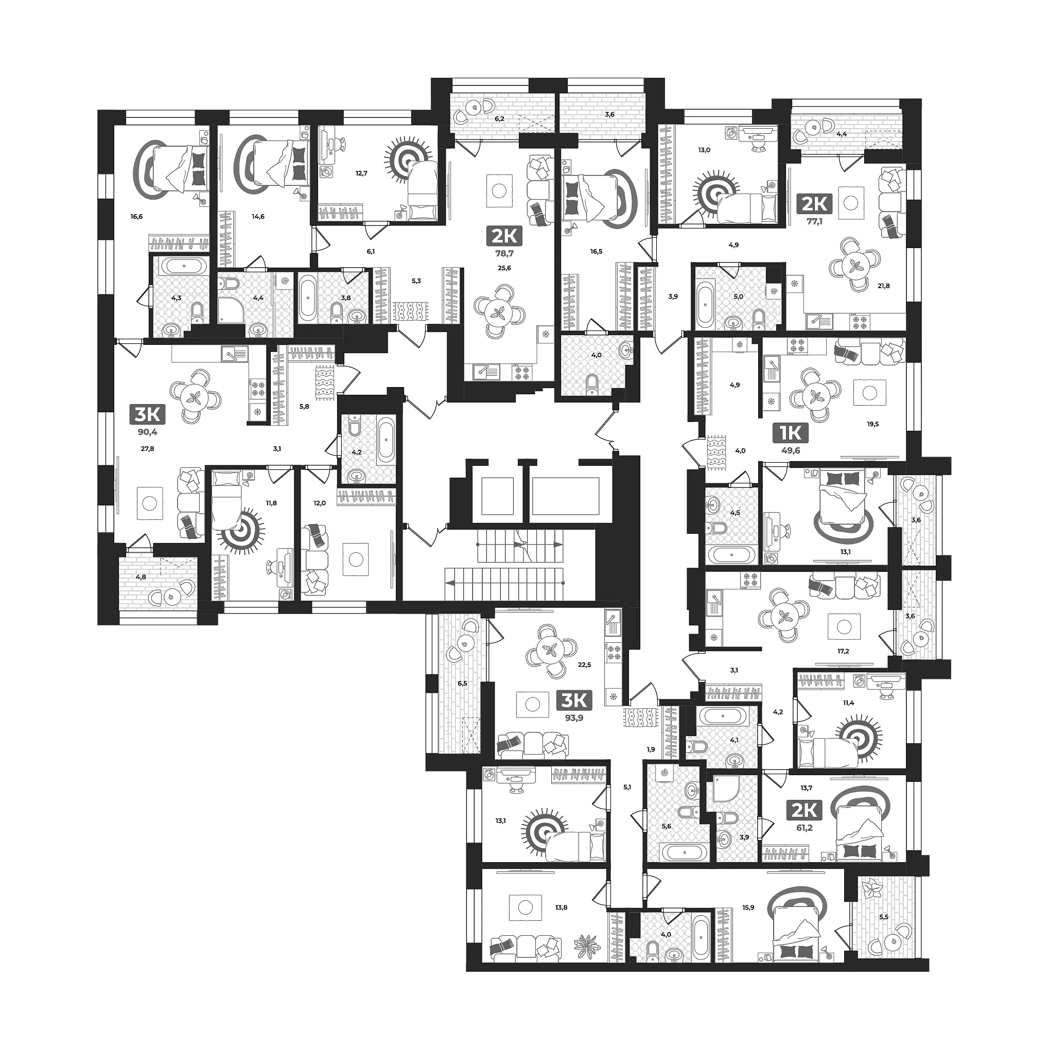 Площадь (общ/жил/кух), м2: 90.8/39.4/—