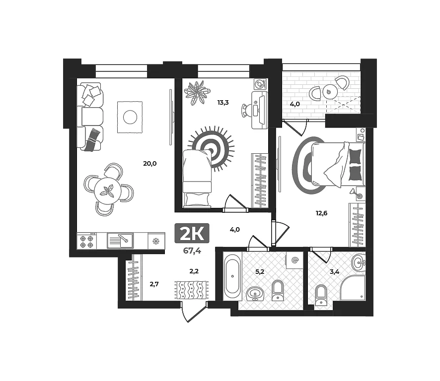 Купить новую двухкомнатную квартиру 68.1 м² на 2/22 этаже в ЖК «Маэстро», г. Тюмень за 14820000 ₽ | Агентство недвижимости «Вплюсе.Топ» — Недвижимость России