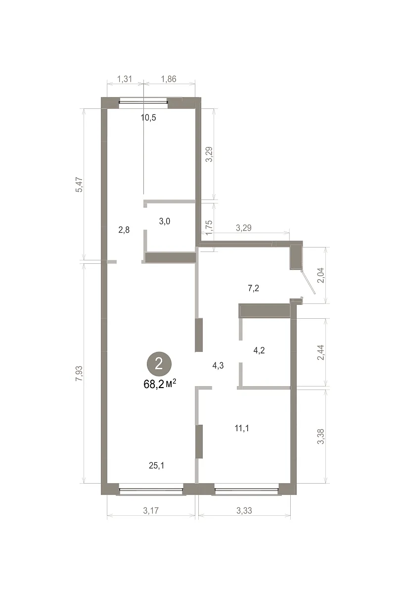 Количество комнат: 2, 68.16 кв.м.