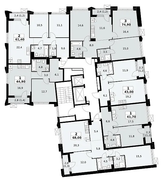 Площадь (общ/жил/кух), м2: 74.9/—/11.6