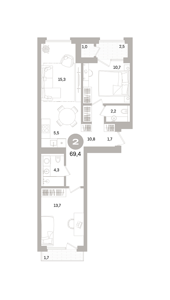Количество комнат: 2, 69.36 кв.м.