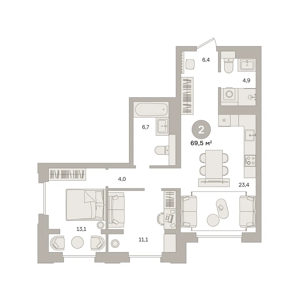 Купить новую двухкомнатную квартиру 69.48 м² на 16/25 этаже в ЖК «Квартал «МОНС»», г. Тюмень за 34630000 ₽ | Агентство недвижимости «Вплюсе.Топ» — Недвижимость России