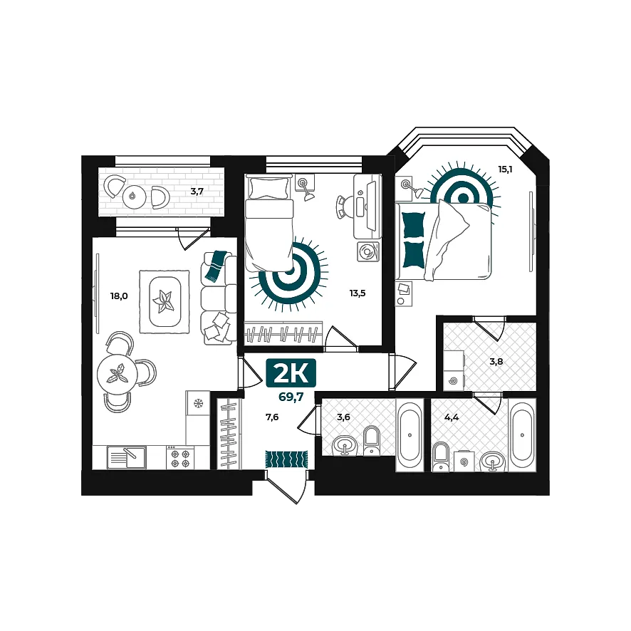 Купить новую двухкомнатную квартиру 69.7 м² на 6/23 этаже в ЖК «Добро», г. Тюмень за 12400000 ₽ | Агентство недвижимости «Вплюсе.Топ» — Недвижимость России