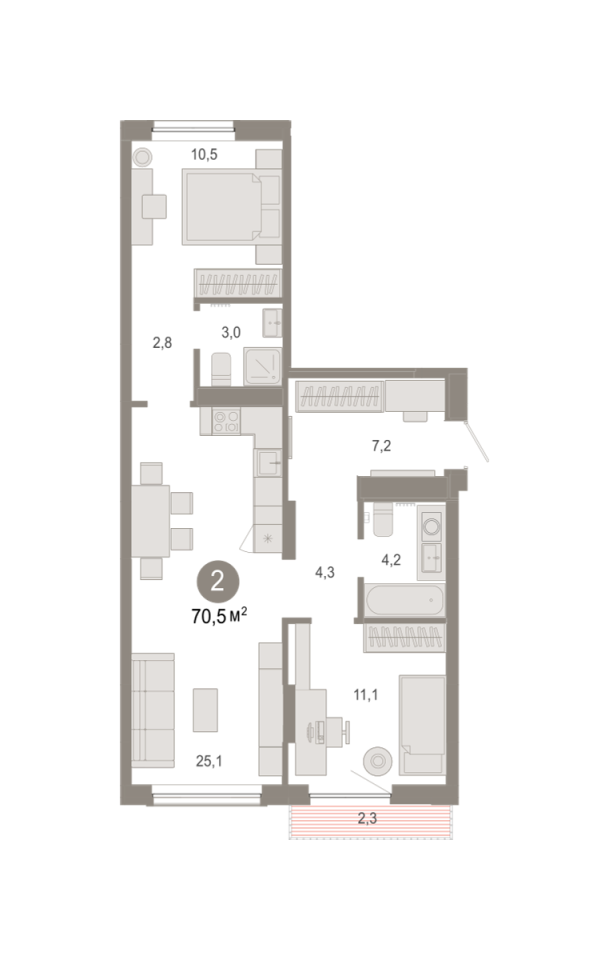 Купить новую двухкомнатную квартиру 70.46 м² на 6/7 этаже в ЖК «Октябрьский на Туре», г. Тюмень за 9130000 ₽ | Агентство недвижимости «Вплюсе.Топ» — Агентство недвижимости "Вплюсе.Топ"
