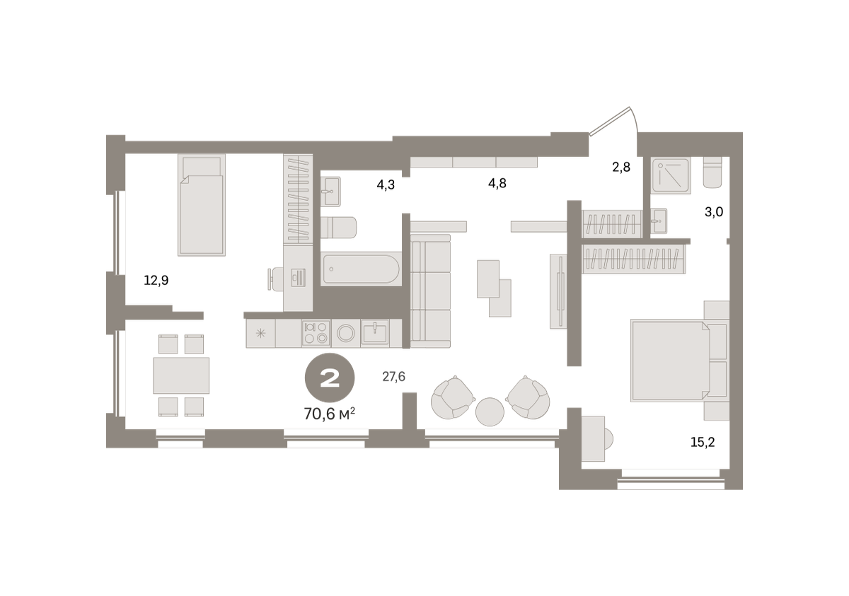 Количество комнат: 2, 70.6 кв.м.