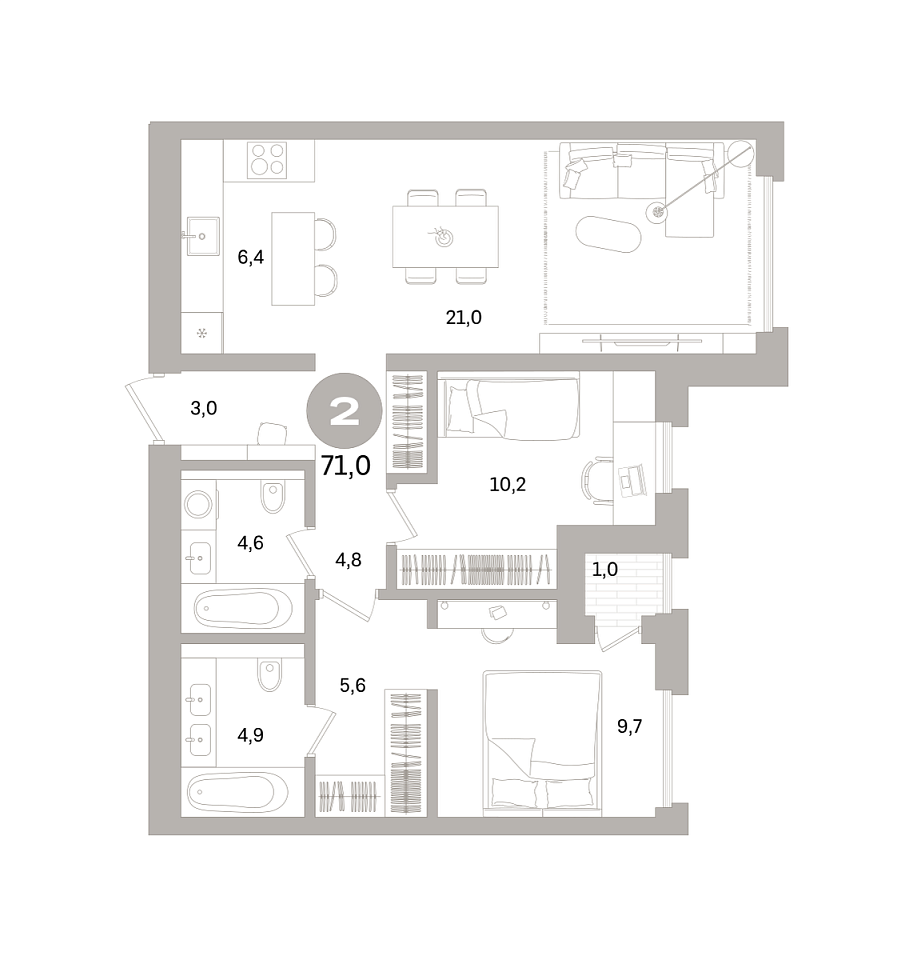 Купить новую двухкомнатную квартиру 70.99 м² на 5/18 этаже в ЖК «Северный ветер», г. Тюмень за 25650000 ₽ | Агентство недвижимости «Вплюсе.Топ» — Недвижимость России