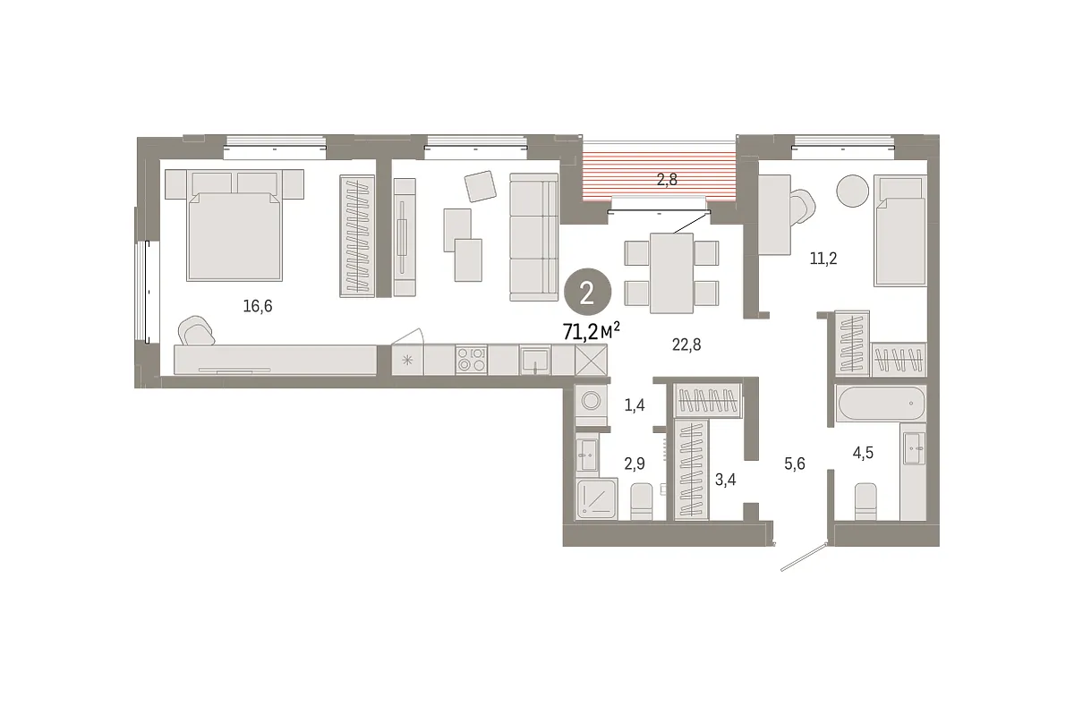 Купить новую двухкомнатную квартиру 71.15 м² на 3/7 этаже в ЖК «Кварталы «На Минской»», г. Тюмень за 12890000 ₽ | Агентство недвижимости «Вплюсе.Топ» — Недвижимость России