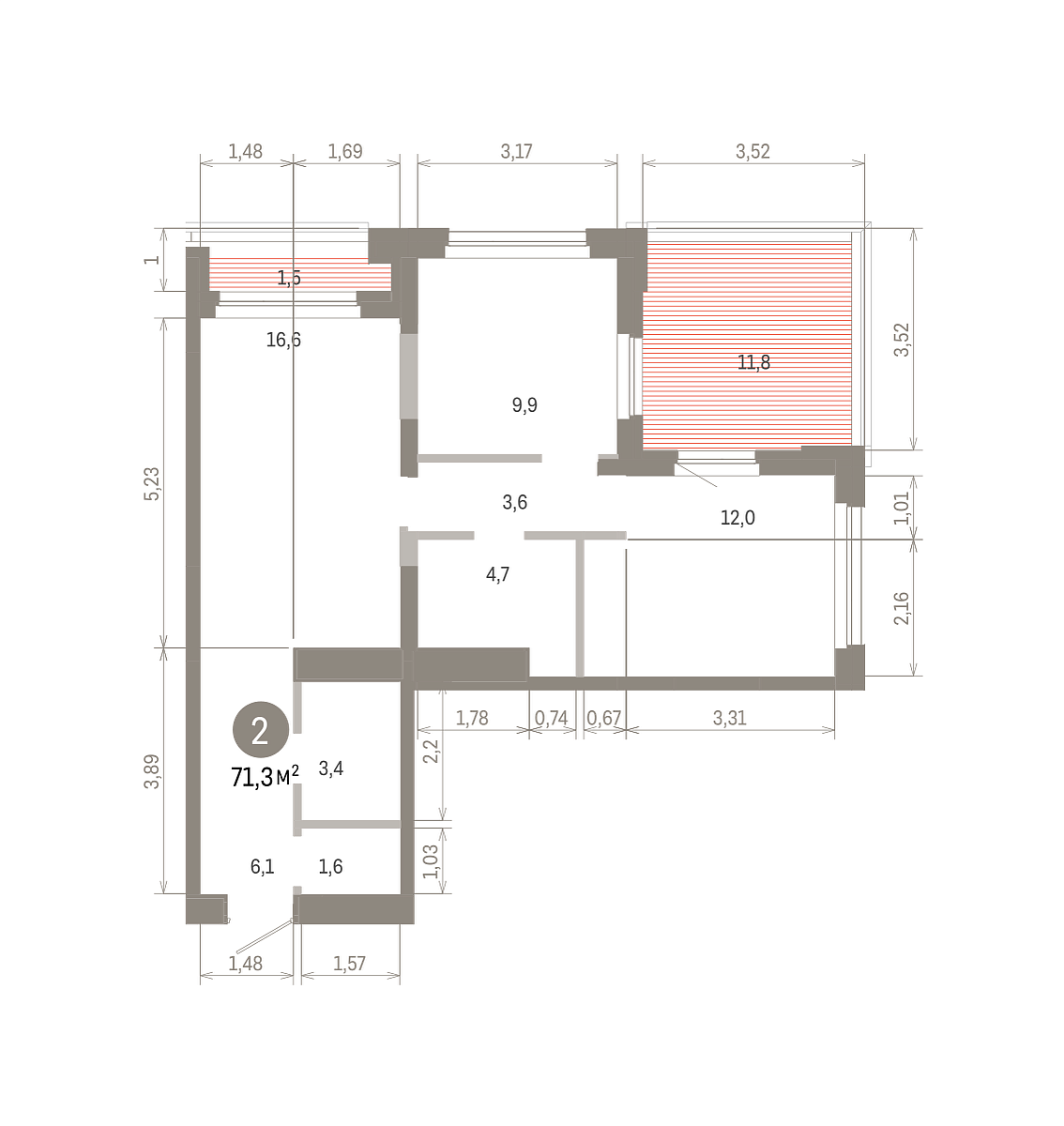 Площадь (общ/жил/кух), м2: 71.4/25.9/19.9