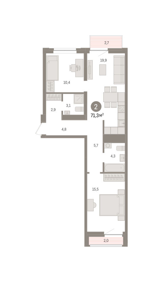 Количество комнат: 2, 71.4 кв.м.