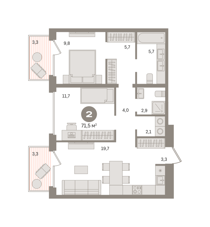 Купить новую двухкомнатную квартиру 71.5 м² на 5/7 этаже в ЖК «Дом «А»», г. Тюмень за 50030000 ₽ | Агентство недвижимости «Вплюсе.Топ» — Агентство недвижимости "Вплюсе.Топ"
