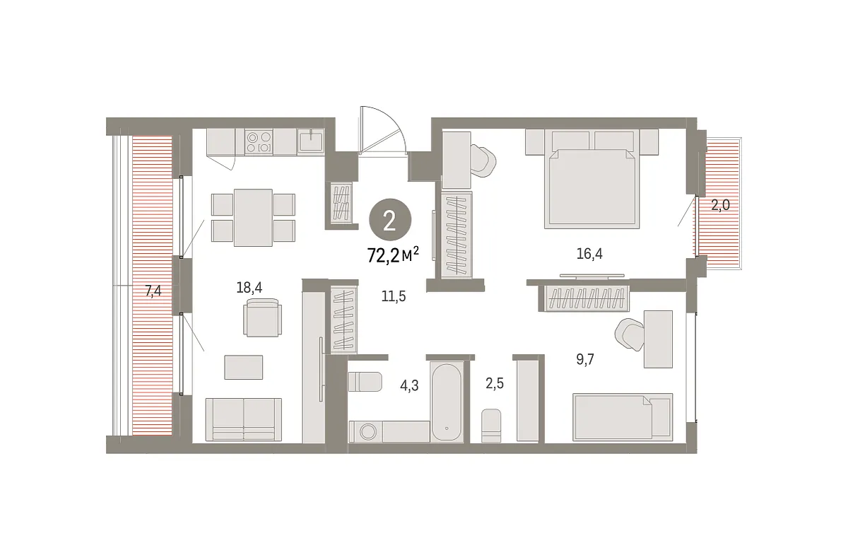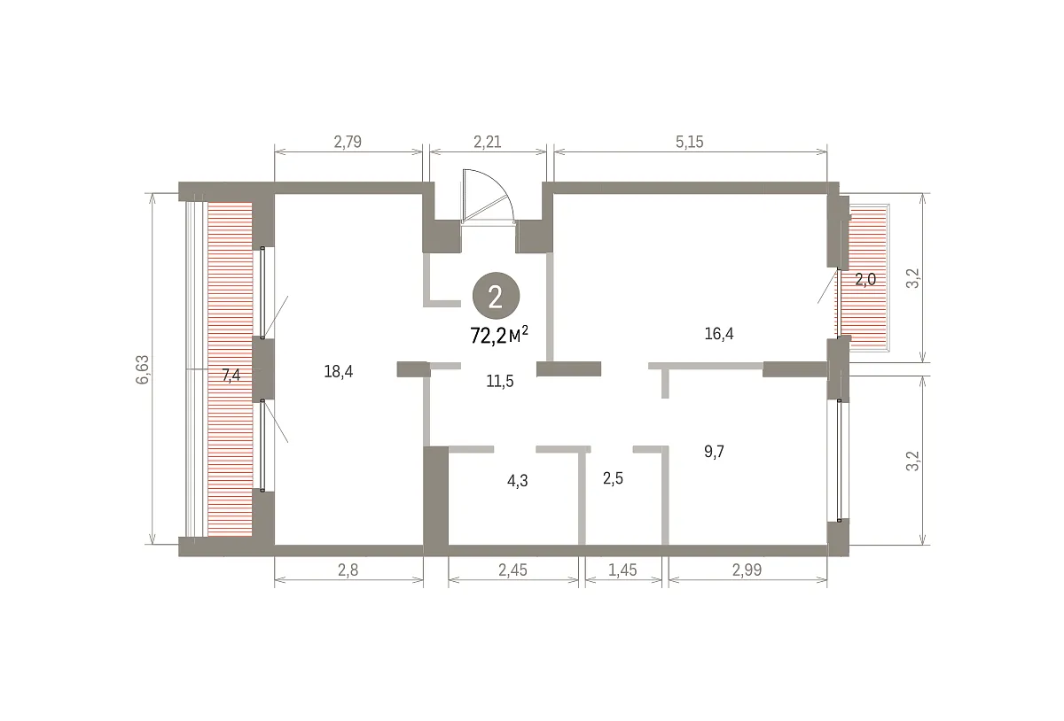 Количество комнат: 2, 72.21 кв.м.
