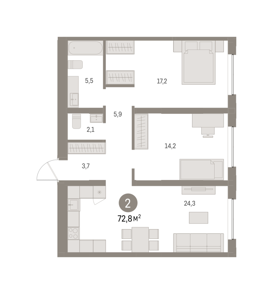 Купить новую двухкомнатную квартиру 72.8 м² на 4/16 этаже в ЖК «Шишимская горка», г. Тюмень за 8680000 ₽ | Агентство недвижимости «Вплюсе.Топ» — Агентство недвижимости "Вплюсе.Топ"